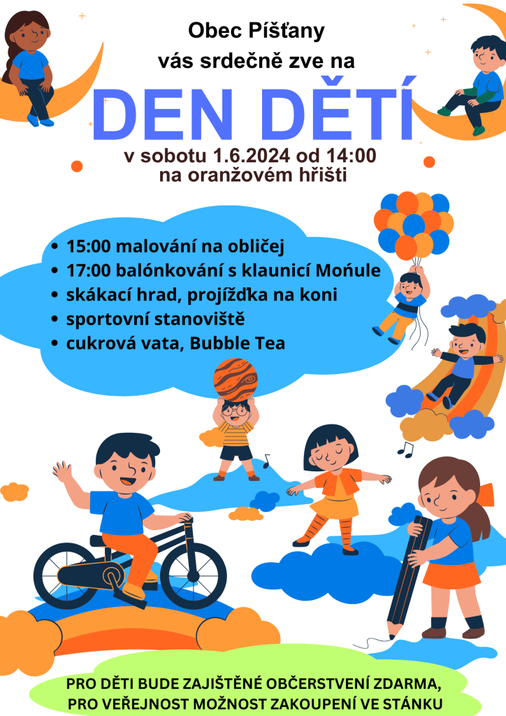 Dne 1.6.2024 od 14h se měl uskutečnit den dětí, který byl z důvodů nepřízně počasí zrušen.