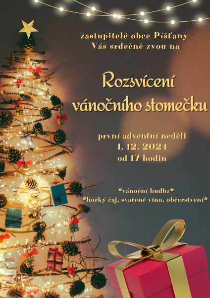 Zastupitelé obce Píšťany Vás srdečně zvou na rozsvícení vánočního stromu, které se uskuteční první adventní neděli 1.12.2024 od 17 hodin na návsi.